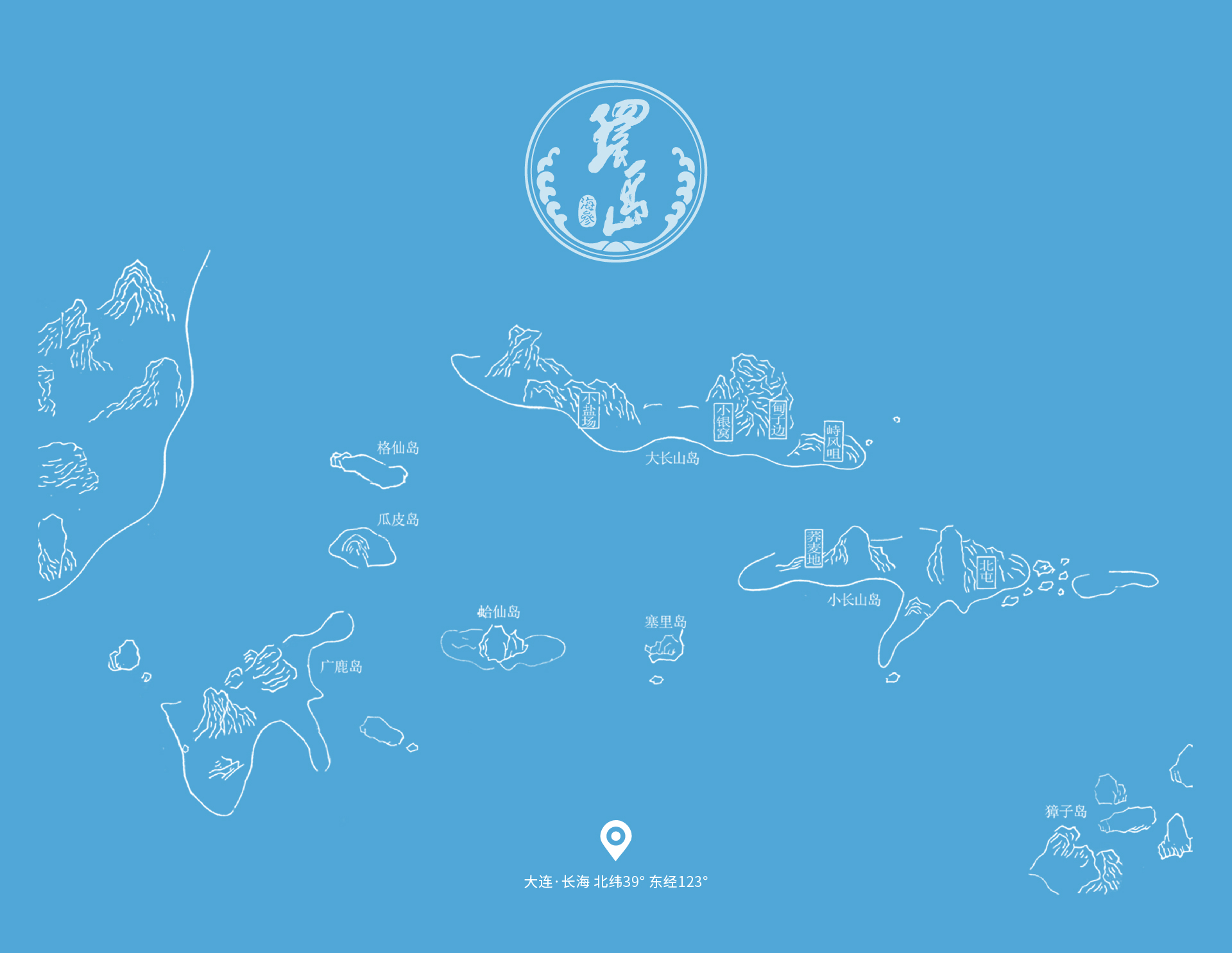 鑲嵌在萬頃碧波之上。從空中俯瞰,只見一群珍珠般的小島,獐子島、廣鹿島、哈仙島、長山島等